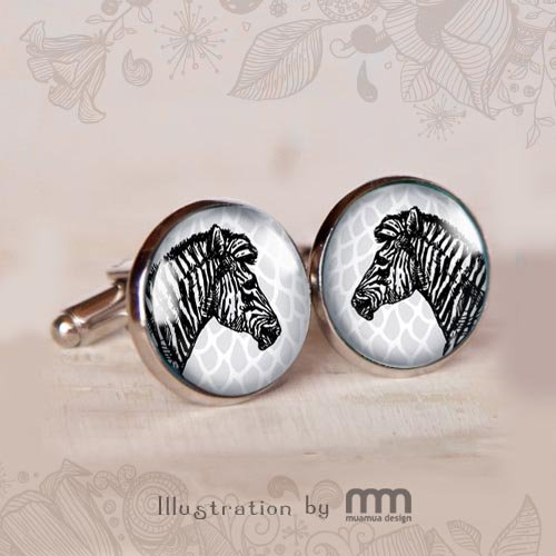 Spinki do mankietów Zebrai to malutkie dzieła sztuki, które łączą nowoczesność z odrobiną antycznego powiewu. Obrazki pod szkiełkiem to obraz mojego autorstwa. Idealny prezent dla Pana od Pani ;), pasujący także do kolczyków z tym samym motywem.