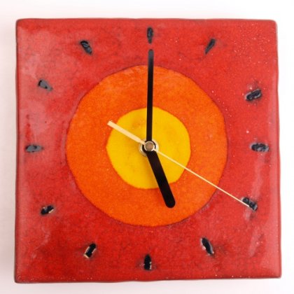 ceramiczny zegar z bardzo energetyzującym motywem. Posiada tradycyjny mechanizm i zawieszkę. Wymiary: 21x21cm. Polecam serdecznie