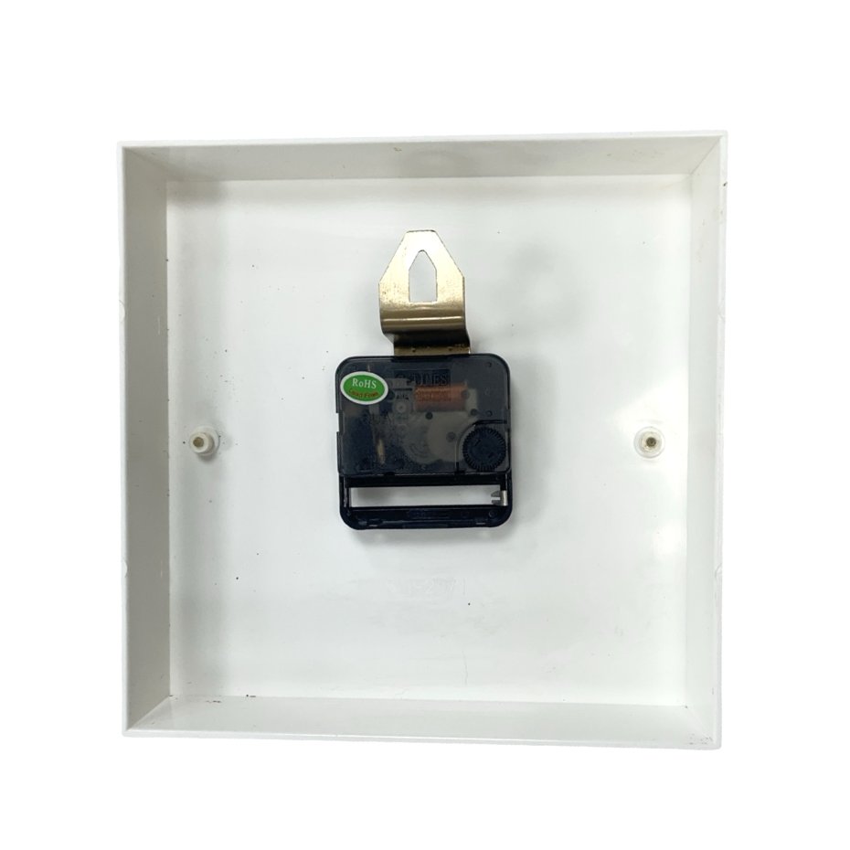 Materiał: Obudowa kwadratowa wykonana z białego tworzywa sztucznego (plastik), tarcza biała z nadrukiem czarnych cyfr arabskich. Wskazówki godzinowa i minutowa czarne, wskazówka sekundowa czerwona — kontrast charakterystyczny dla zegarów tej epoki. Mechanizm kwarcowy elektroniczny, zasilany baterią. Szybka ochronna wykonana z przezroczystego tworzywa lub szkła.