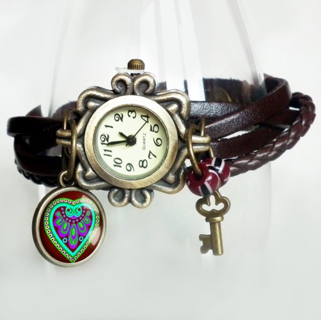 Tagi: #bransoletka zegarek, #brązowa skóra, #serduszko