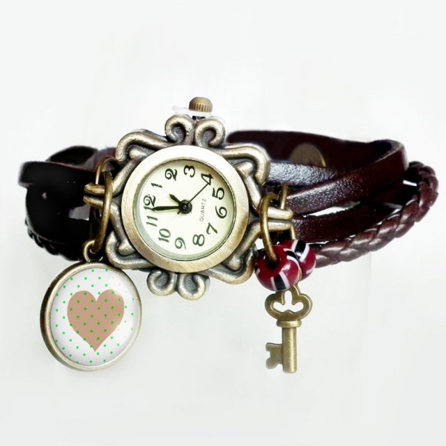 Tagi: #bransoletka zegarek, #brązowa skóra, #serce