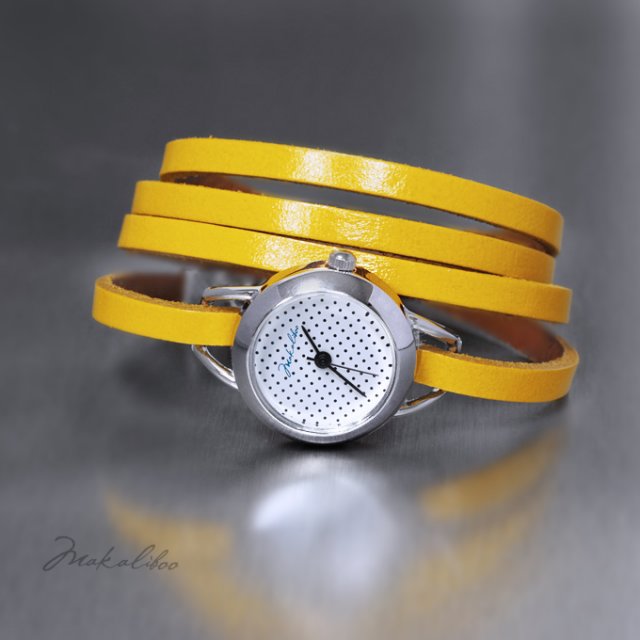 Śliczny, delikatny, kobiecy, zegarek. Mój autorski projekt ma tarczę wielkości 18 mm średnica zegarka 23 mm. Pasek szeroki na 5 mm owija nadgarstek 4 razy. Pasuje na nadgarstek 14 - 16cm. Baza w kolorze srebrnym. Jeśli potrzebujesz inny rozmiar napisz. Zegarek posiada mechanizm kwarcowy i wymienną baterię. Wolny od niklu i ołowiu. Projekt autorski. Wszystkie prawa zastrzeżone.