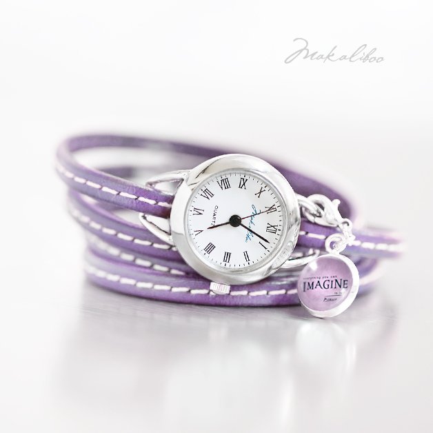 Śliczny, delikatny, kobiecy, zegarek z kolekcji Makaliboo. Tarcza ma średnicę 18 mm, zegarek 23 mm. Pasek szeroki na 5 mm wykonany z naturalnej skóry bardzo wysokiej jakości owija nadgarstek 4 razy. Pasuje na nadgarstek 14 - 16 cm. Baza w kolorze srebrnym. Zegarek posiada mechanizm kwarcowy i wymienną baterię. Wolny od niklu i ołowiu.