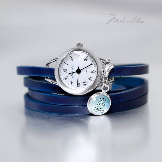 Śliczny, delikatny, kobiecy, zegarek. Mój autorski projekt ma tarczę wielkości 18 mm średnica zegarka 23 mm. Baza w kolorze srebrnym. Odpinany cherms z autorską grafiką ma średnicę 12 mm. Pasek szeroki na 5 mm owija nadgarstek 4 razy. Pasuje na nadgarstek 14 - 16cm. Jeśli potrzebujesz inny rozmiar napisz. Zegarek posiada mechanizm kwarcowy i wymienną baterię. Wolny od niklu i ołowiu. Projekt autorski. Wszystkie prawa zastrzeżone