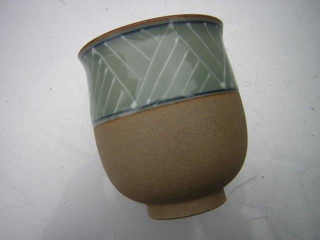 Mistrzostwo sztuki japońskiej. Ręcznie wykonana I zdobiona czarka. To przeżycie estetyczne, nie ezduszny przedmiot. Ceramika artystyczna w pełnym tego słowa znaczeniu. Charakterystyczna forma na mini stópce. Wielkość w dłoń odpowiednia. Cudo !!! Wykonanie mistrzowskie...od zewnątrz harmonia struktur i barw. Dół idealnie gładki, biskwitowo matowy. Góra z subtelnym graficznym zdobieniem satynowo - błyszcząca, wzór malowany podszkliwnie. Dwa delikatne paseczki. Wewnątrz idealnie położone szkliwo w zielono szarym kolorze, pogreslone obwódką w kolorze Indygo. Sygnatura podszkliwna, ręką autora precyzyjnie wykonana. Dźwięczna, szlachetna, wyjatkowa.