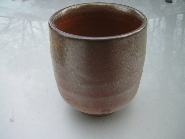 Ciekawa Japońska Czarka ceramiczna sygnowana zawijaskiem meandrycznym oryginalnie, bo wewnątrz. Dodatkową sygnatura po stronie zewnętrznej, stemplowana. Mocna, solidna. Prostota szlachetności artystycznego japońskiego rękodzieła. Typowo orientalny kształt na mini stópce i oszczędne medytacyjne wręcz zdobienie. Na kole garncarskim toczona, czego ślady fakturową są jej ozdobą na części dolnej od zewnątrz. Wewnątrz gładka. Delikatnie zdobiona ciekawym nieco chropawo szkliwem efektownym. Wykończenie matowo satynowe.