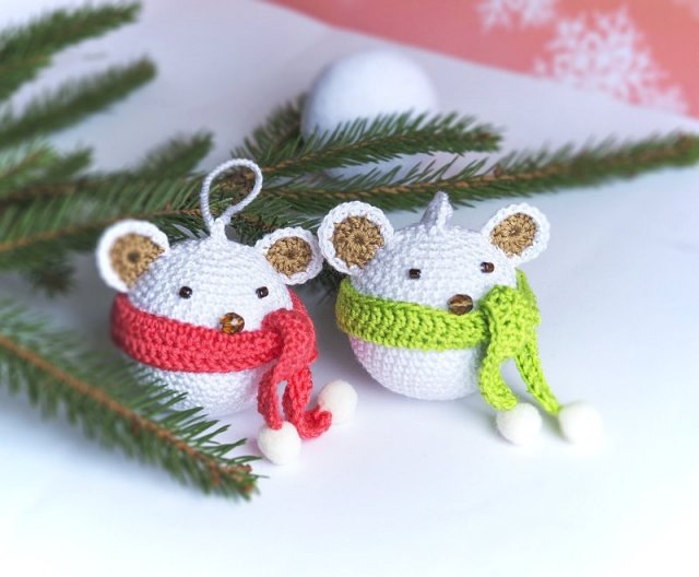Bombki mają średnicę ok 7cm, zrobione są na szydełku z bawełnianej włóczki.