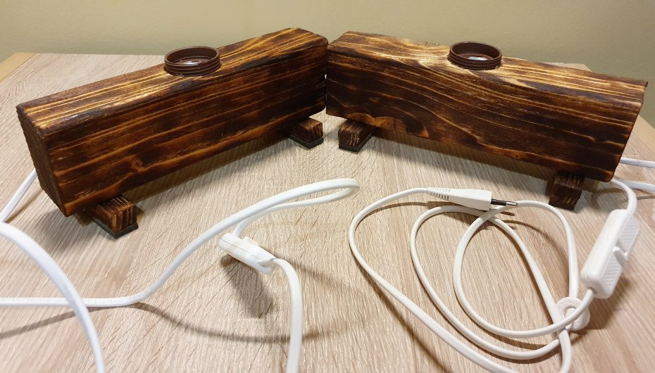 Unikatowy, rustykalny styl lamp, uzyskany poprzez opalanie drewna, tworzy z nich prawdziwe arcydzieło! Lampki są pomalowane półmatowym lakierem wodnym. Idealnie pasują zarówno do sypialni, jak też do pokoju dziennego, tworząc w każdym pomieszczeniu magiczną, niepowtarzalną atmosferę. Każda z lamp stoi na dwóch drewnianych nóżkach. Produkty prezentują styl, którego próżno szukać w sklepach z produktami fabrycznymi, jednakowymi, tworzonymi masowo.