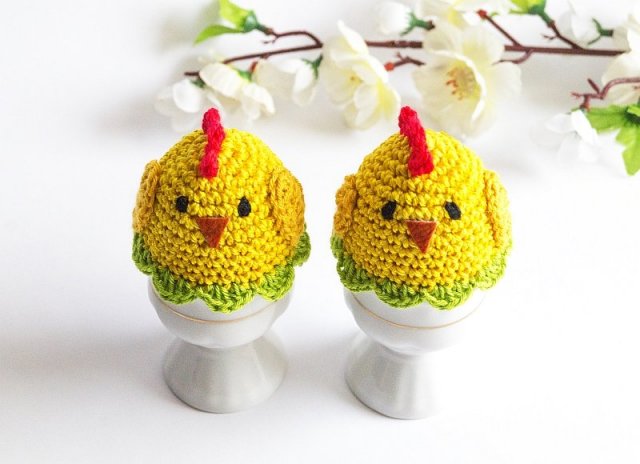 Zestaw 2 ocieplaczy na jajka wykonanych na szydełku, z miękkiej bawełnianej włóczki.