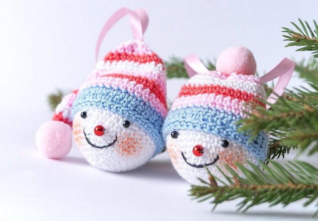 Bałwanki mają wysokość ok 9 cm, zrobione są na szydełku z bawełnianej włóczki.