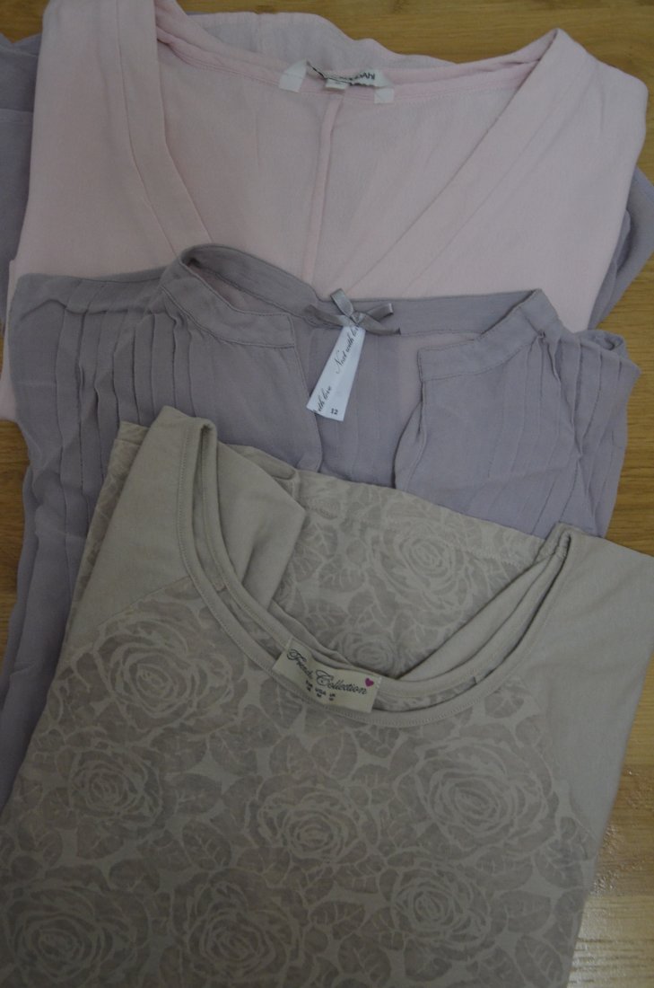 zestaw 3 bluzek pasujących na rozmiar 40/L (mimo że na metkach 2 bluzek inne rozmiary);