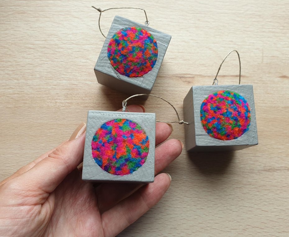 4.  > Zestaw 3 drewnianych bombek z włóczkowym wypełnieniem (nr 7097112)