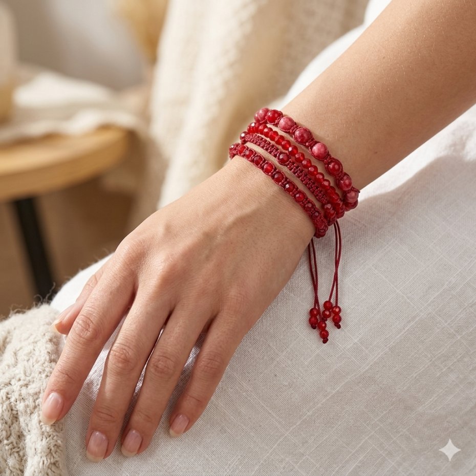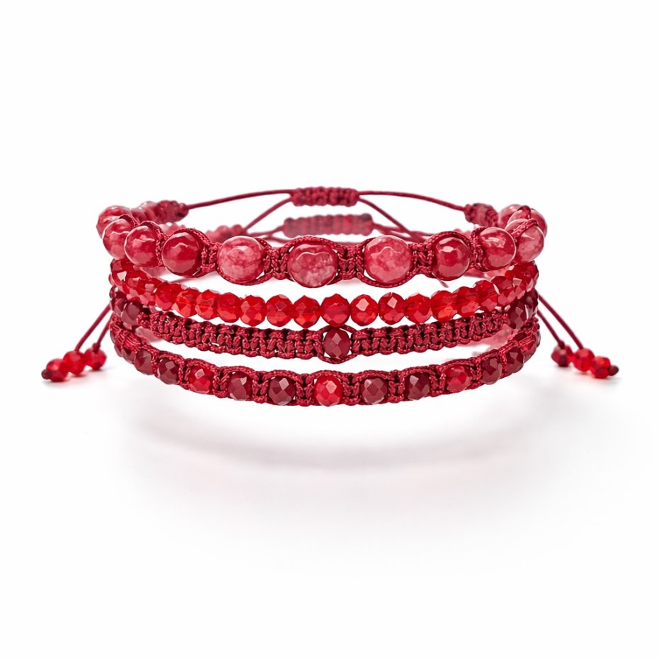To połączenie pasji, elegancji i naturalnej energii, zamknięte w misternych splotach makramy. Czerwień to symbol witalności i ochrony, co czyni ten komplet idealnym dodatkiem dla osób pewnych siebie i ceniących unikalną biżuterię handmade.