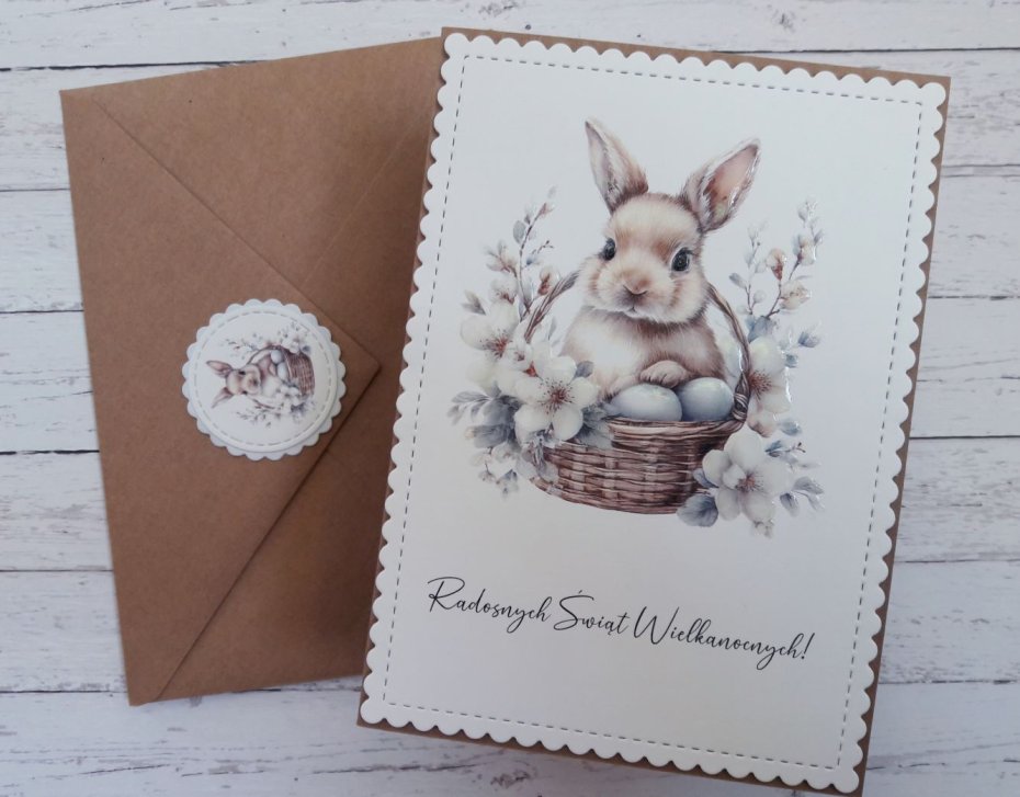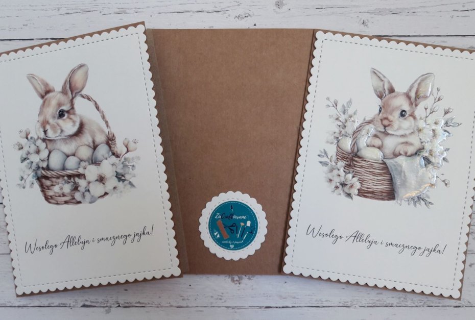 Motywem przewodnim kartek są grafiki o tematyce wielkanocno-wiosennej z uroczymi króliczkami w koszyczkach. Kartki będą idealne do złożenia życzeń wielkanocnych i umilenia okresu oczekiwania na te wyjątkowe święta.