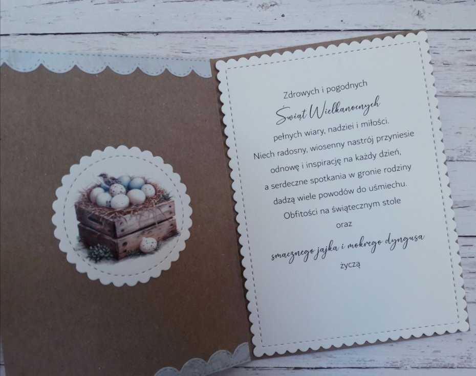 Wewnątrz jest miejsce na życzenia, które będą wydrukowane na tym samym papierze, co front kartki.