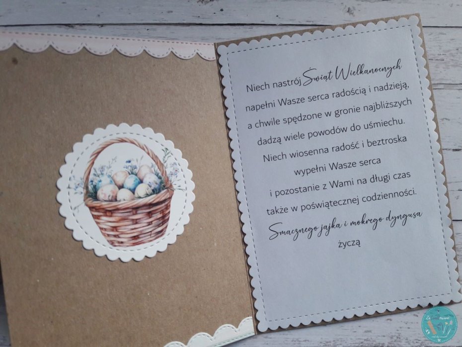 Wewnątrz jest miejsce na życzenia, które będą wydrukowane na tym samym papierze, co front kartki.