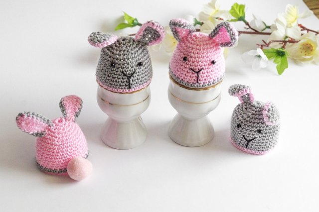 Zestaw 2 ocieplaczy na jajka wykonanych na szydełku, z miękkiej bawełnianej włóczki.