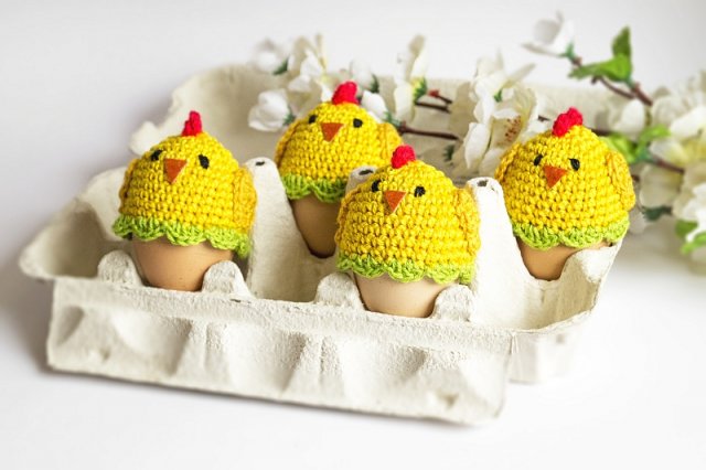 Zestaw 2 ocieplaczy na jajka wykonanych na szydełku, z miękkiej bawełnianej włóczki.