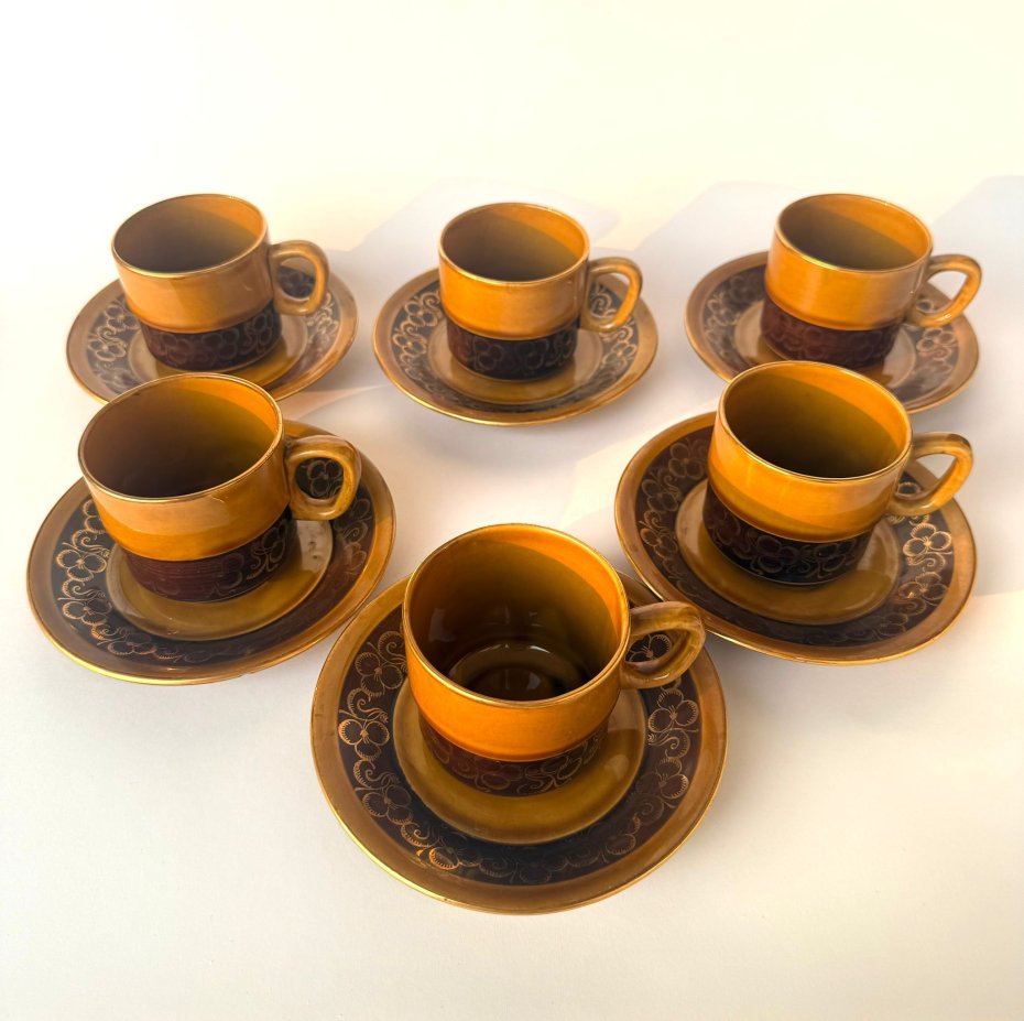 Na sprzedaż wyjątkowy komplet 6 oryginalnych filiżanek wraz ze spodkami z kultowej wytwórni w Tułowicach. To ikona polskiego wzornictwa z okresu PRL (lata 70.–80. XX wieku), która idealnie wpisuje się w stylistykę retro i vintage.