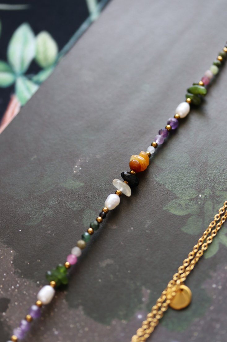 Szept Letniej Nocy to subtelny, romantyczny zestaw biżuterii inspirowany ciepłem sierpniowych wieczorów. W komplecie znajdują się dwa elementy: naszyjnik z naturalnych kamieni oraz zawieszka z prawdziwymi, ręcznie zatopionymi w żywicy kwiatami. Harmonijne barwy ziemi i roślin tworzą delikatną, wyjątkową kompozycję. To biżuteria dla kobiet, które kochają naturę, detale i dodatki z duszą. ✨