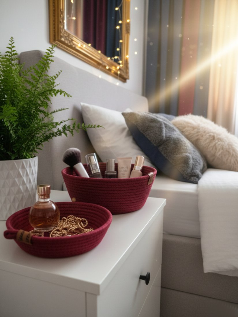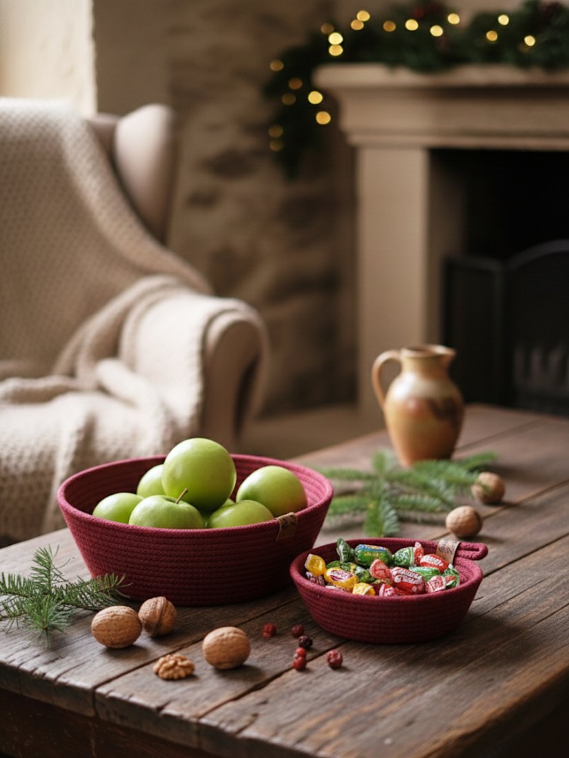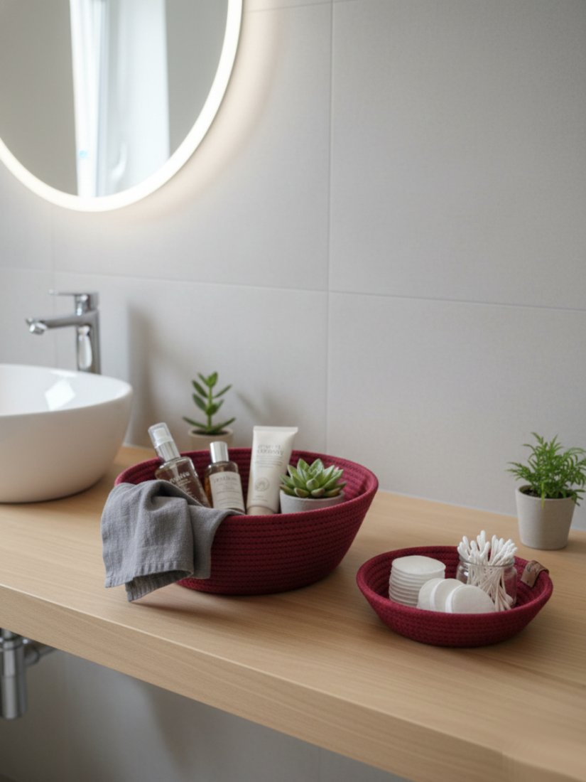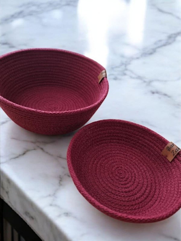 Otwórz drzwi do świata drobnych, codziennych cudów z tym wyjątkowym zestawem bordowych koszyków. Szyte ze sznurka bawełnianego w głębokim, ciepłym odcieniu bordo, który przywodzi na myśl jesienne liście i aromat gorącej czekolady.