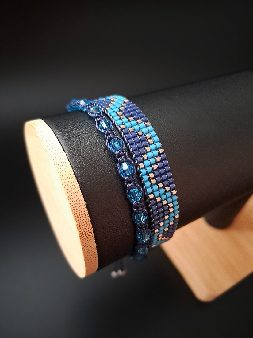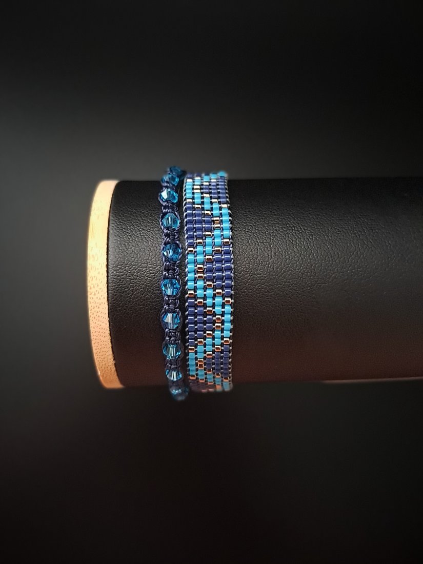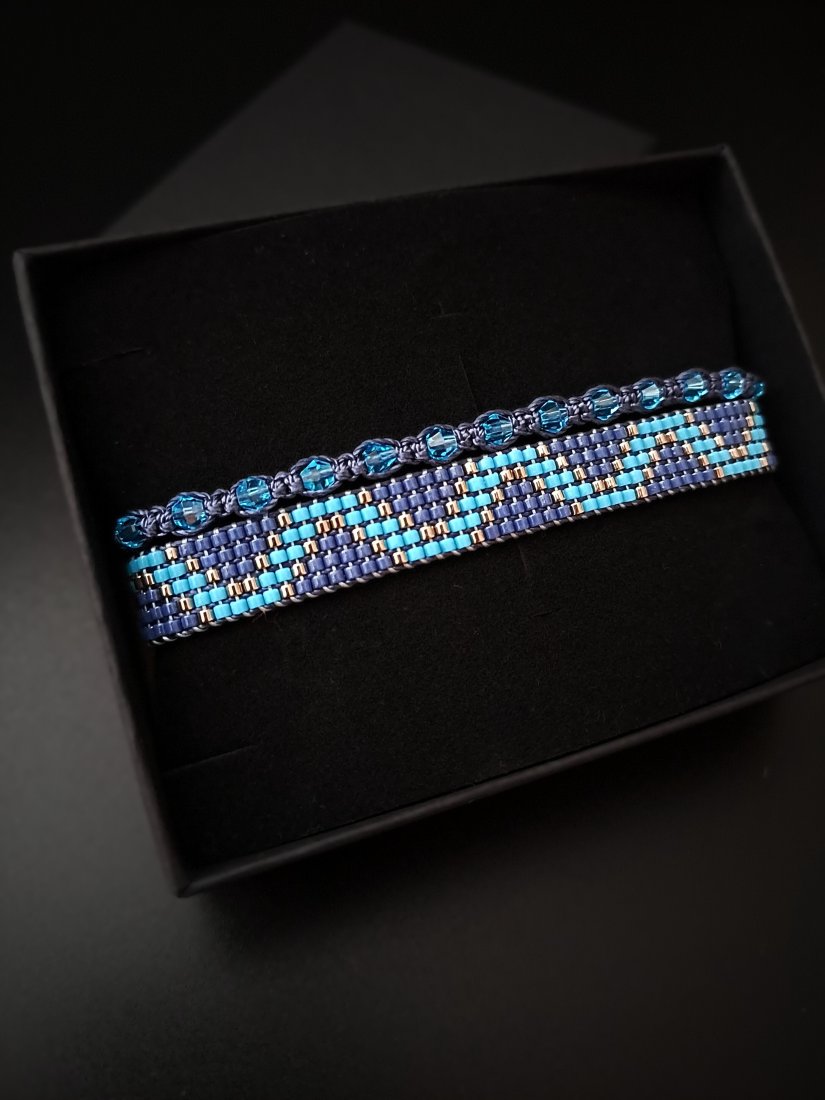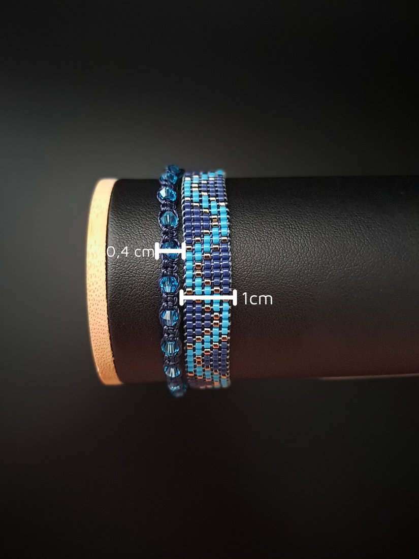 Wyjątkowy zestaw bransoletek, które łączą w sobie artystyczne rzemiosło i nowoczesny styl. Każda z nich jest wykonana ręcznie z dbałością o najdrobniejsze szczegóły, a ich różnorodność sprawia, że pasują do każdej okazji. Pierwsza bransoletka, misternie utkana na krośnie, emanuje delikatnym urokiem. Jej symetryczny, precyzyjnie ułożony wzór dodaje wyrafinowania, idealnie dopełniając zarówno codzienne, jak i wieczorowe stylizacje.
