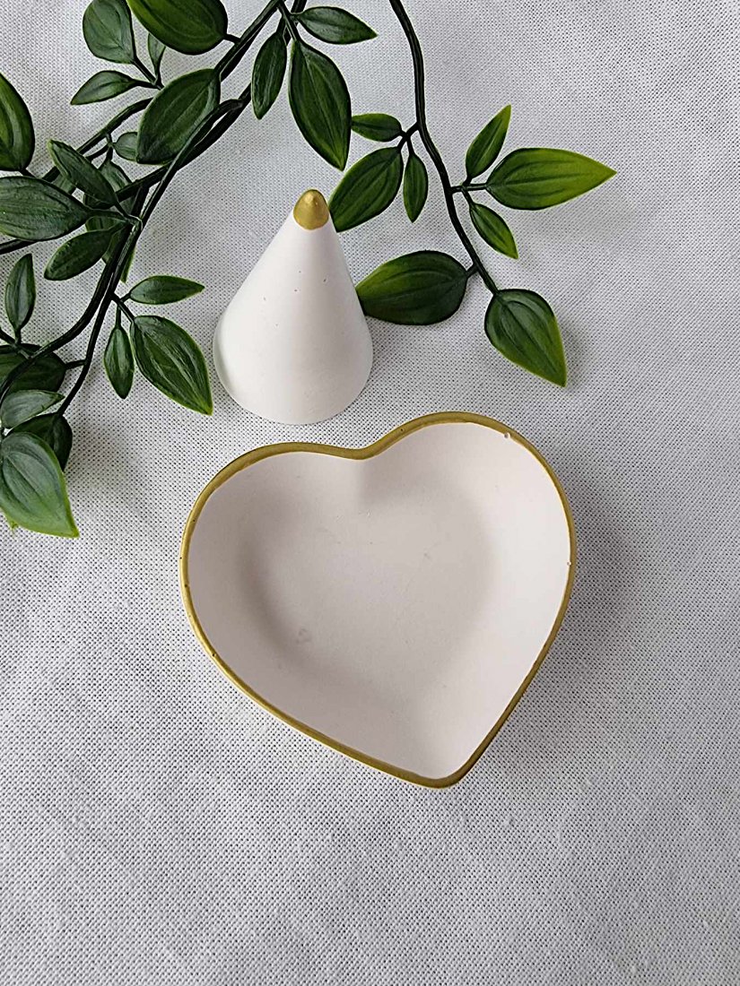 Tagi: #podstawka serce z gipsu, #pojemniki na biżuterię, #stożek na pierścionki, #zestaw prezentowy