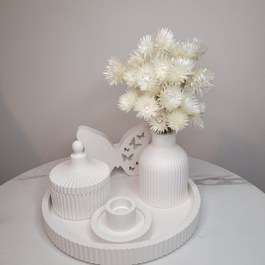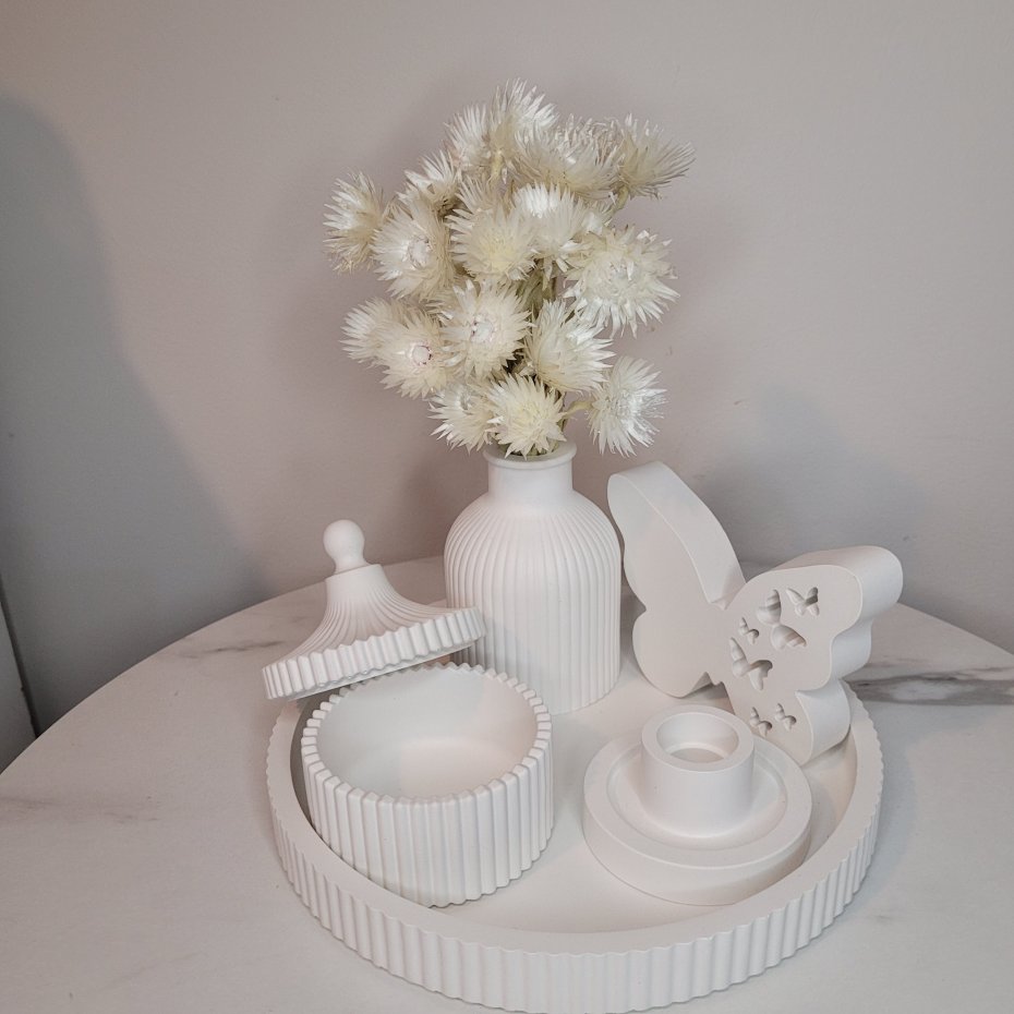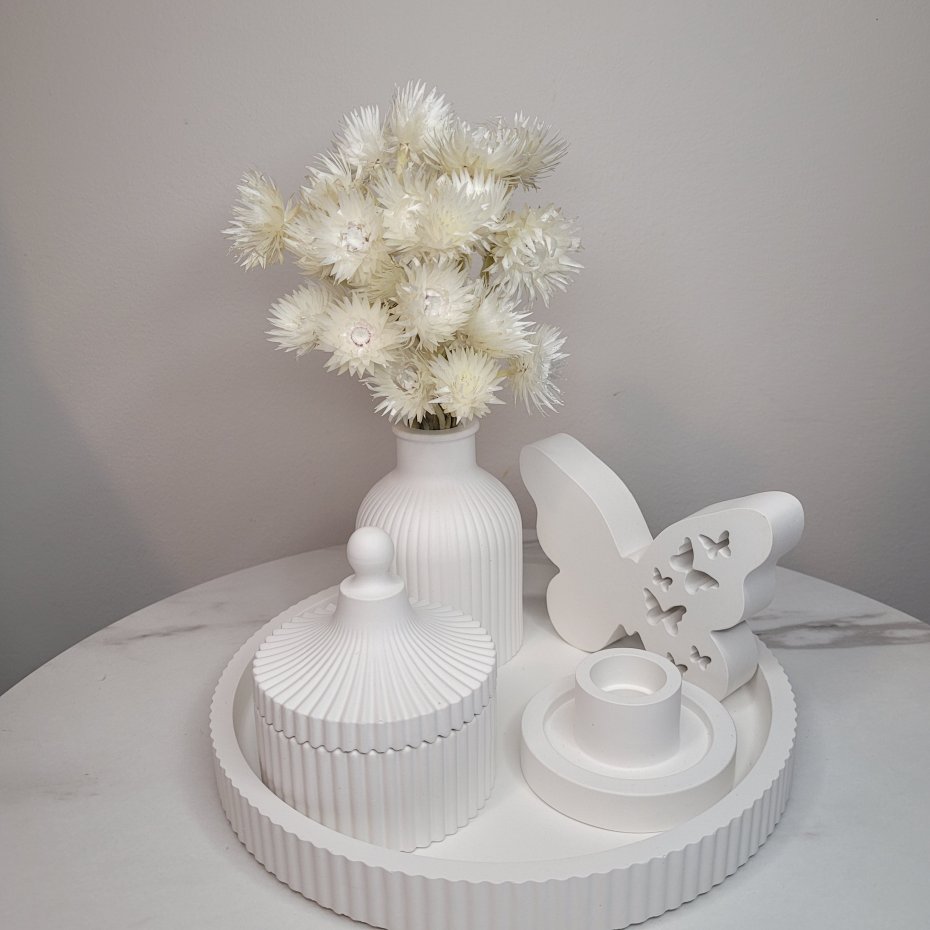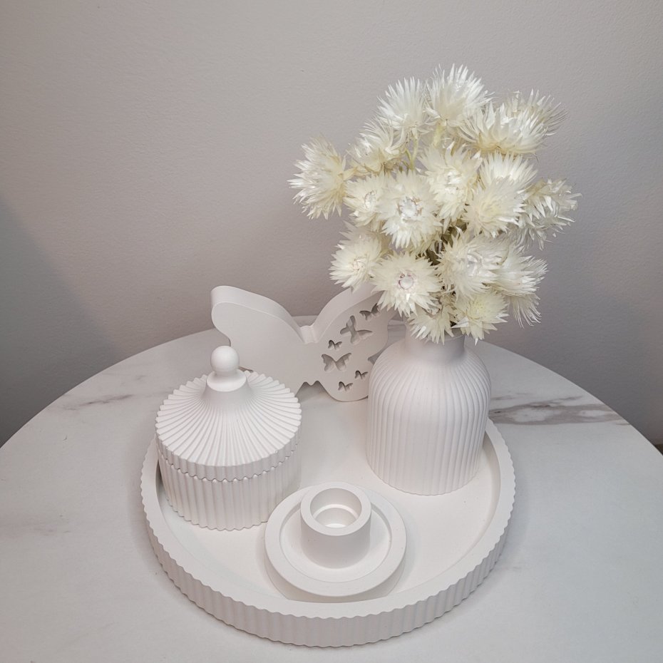 Dodaj odrobinę luksusu do swojego wnętrza dzięki temu wyjątkowemu zestawowi! Wykonany z wysokiej jakości gipsu, zestaw składa się z: