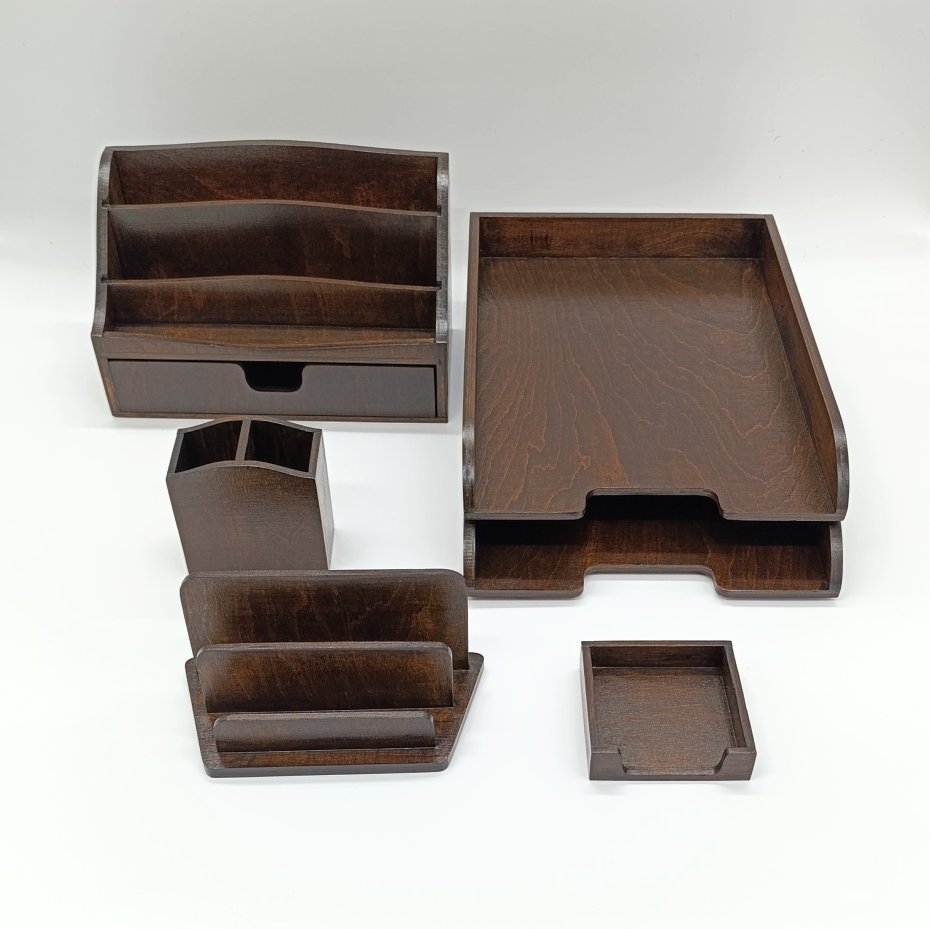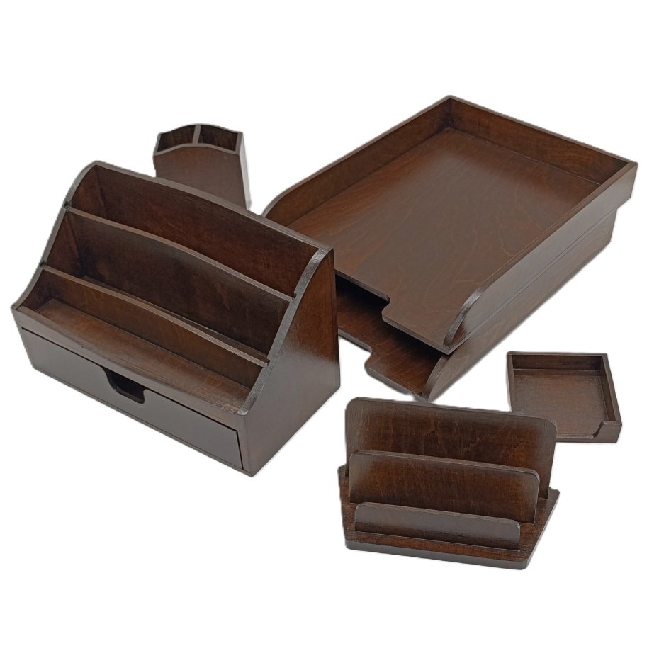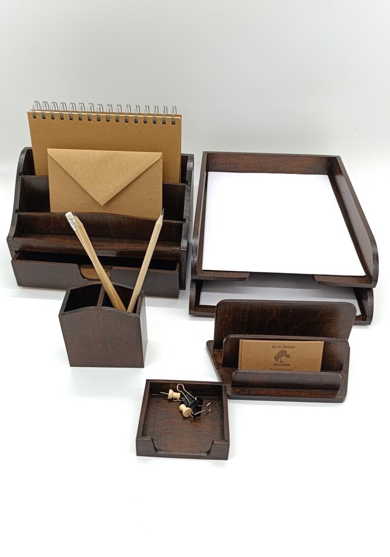 Zestaw skałada się z pięciu elementów, które na co dzień będą ozdobą, wizytówką Twojego, lub bliskiej Ci osoby, biurka.