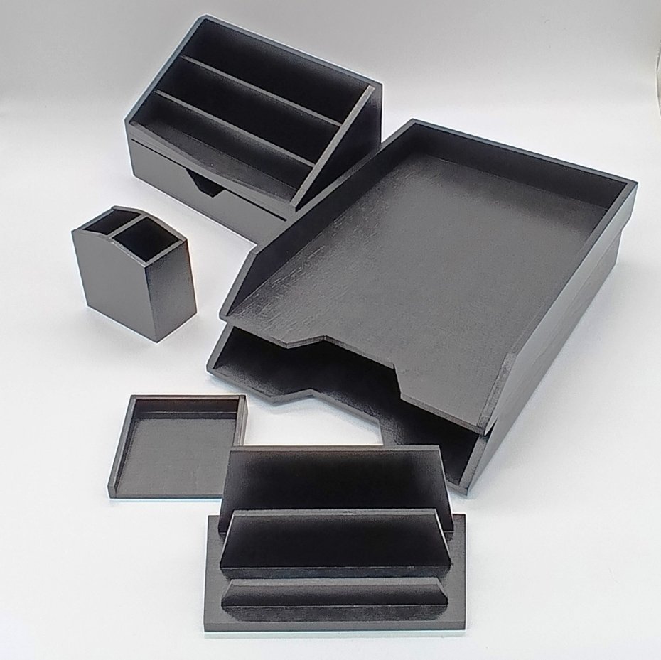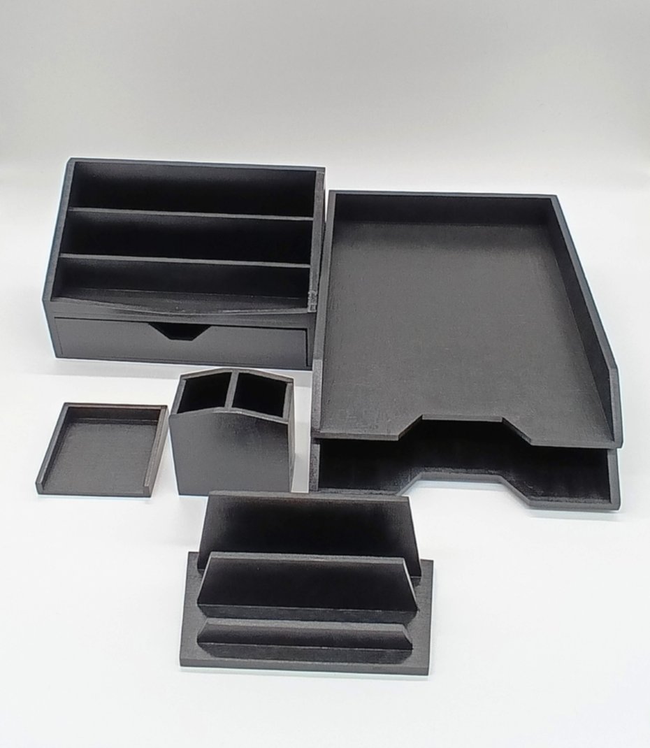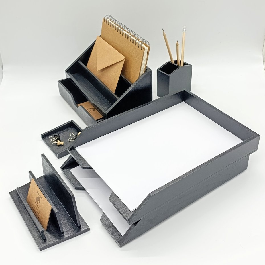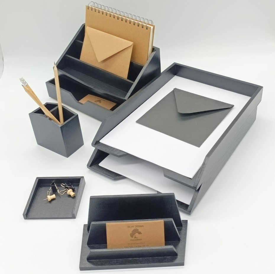 Zestaw skałada się z pięciu elementów, które na co dzień będą ozdobą, wizytówką Twojego, lub bliskiej Ci osoby, biurka.