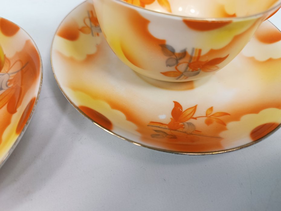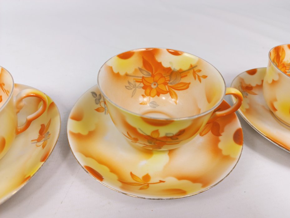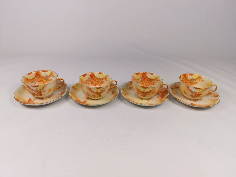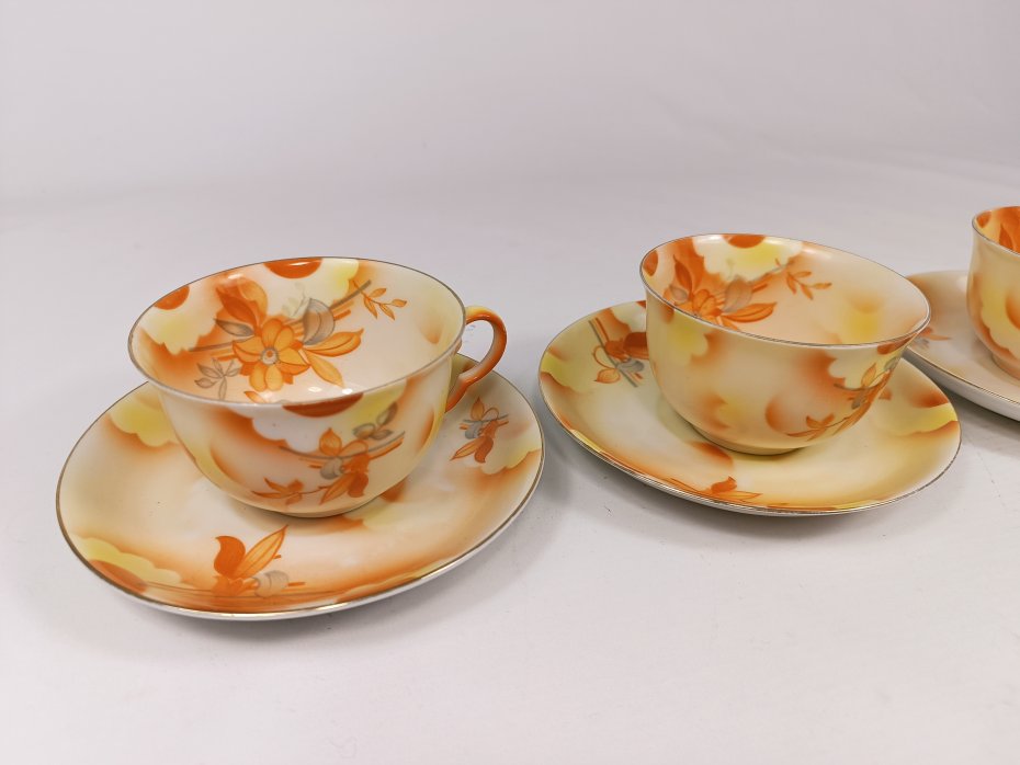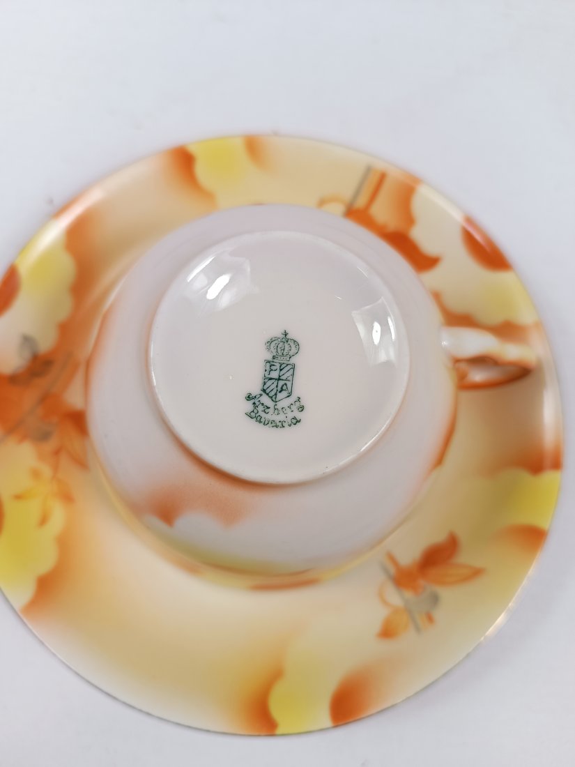 Zestaw czterech filiżanek Arzberg Bavaria, Art Deco z lat 30. Stan zachowania bardzo dobry, bez odprysków, miejscami występują drobne przetarcia. Filiżanki dekorowane metodą spritzdekor.