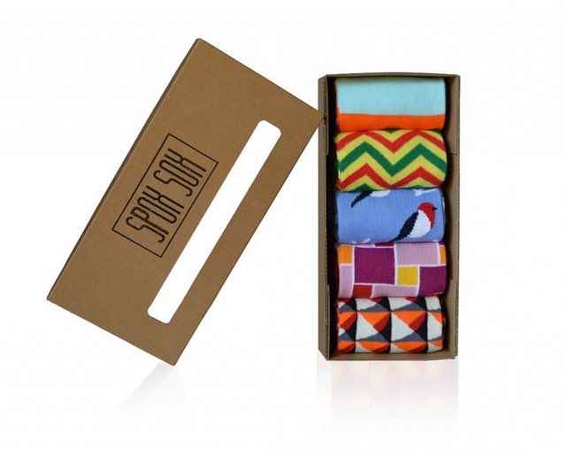 Oferujemy zestaw pięciu niespotykanych kolorowych skarpetek zapakowanych w eleganckie pudełko.