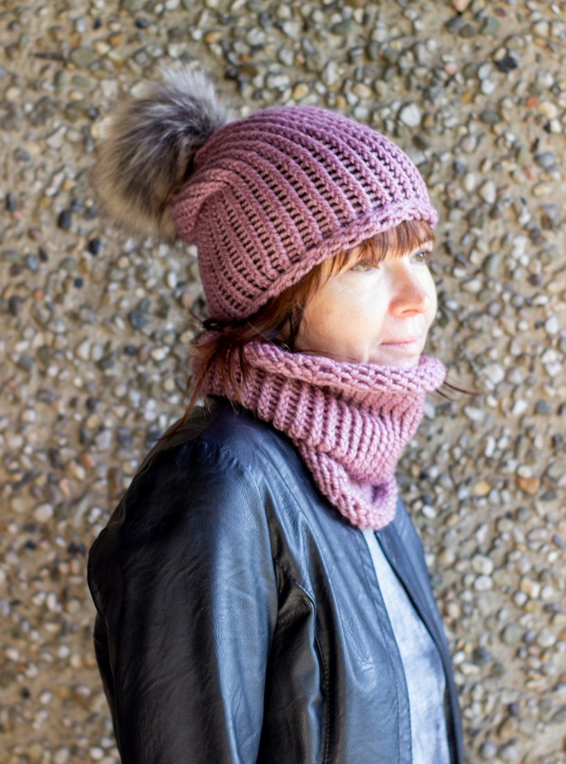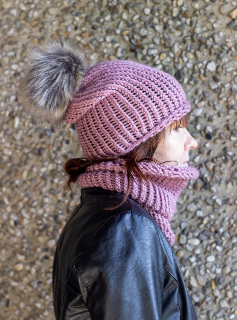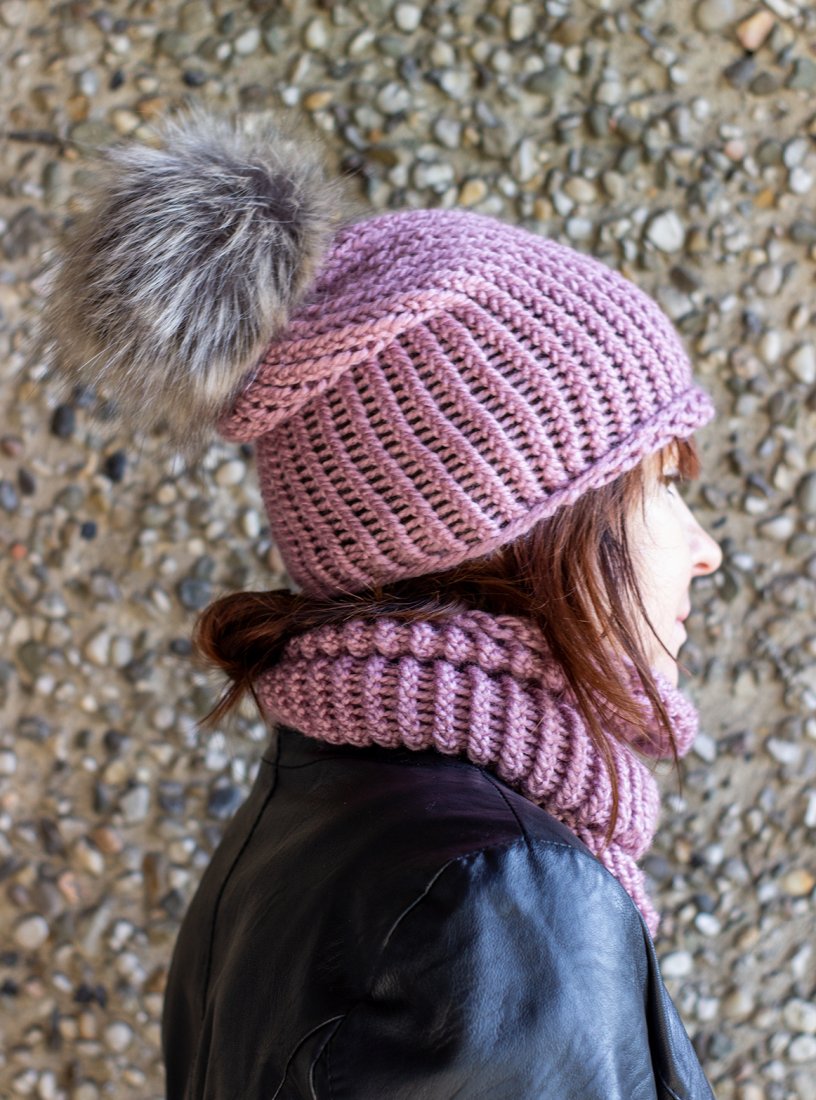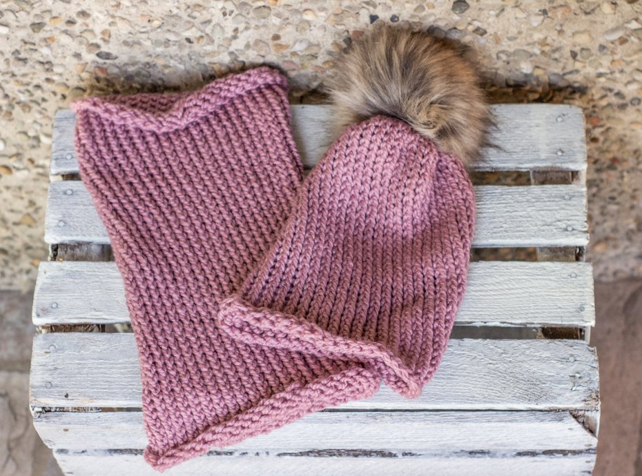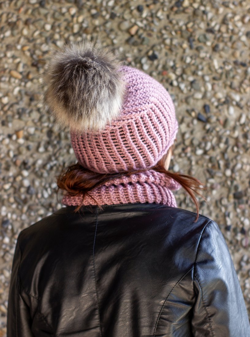 Delikatny i miły komplet zimowy - czapka i komin wykonane na obręczy dziewiarskiej w delikatnym różowym kolorze. Prosta czapka z ażurem i pomponem pasuje do każdej fryzury. Prać ręcznie w 40 st. - włóczka akrylowa z domieszką wełny