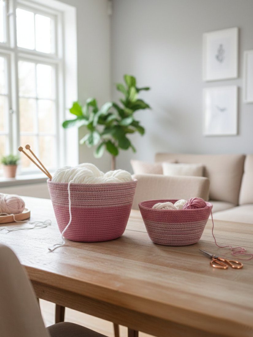 Koszyki są nie tylko użyteczne, ale też wyjątkowo dekoracyjne – wprowadzają do przestrzeni miękkość, spokój i odrobinę rękodzielniczego uroku. Dzięki stonowanej kolorystyce oraz eleganckiemu przeplocie świetnie komponują się w nowoczesnych wnętrzach, rustykalnych przestrzeniach i pokojach dziecięcych. Ponieważ każdy zestaw powstaje w małej pracowni, każdy egzemplarz jest unikatowy, tworzony z dbałością o detale i zamiłowaniem do rzemiosła.