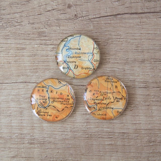 Magnesy wykonane z prawdziwych vintage map świata.