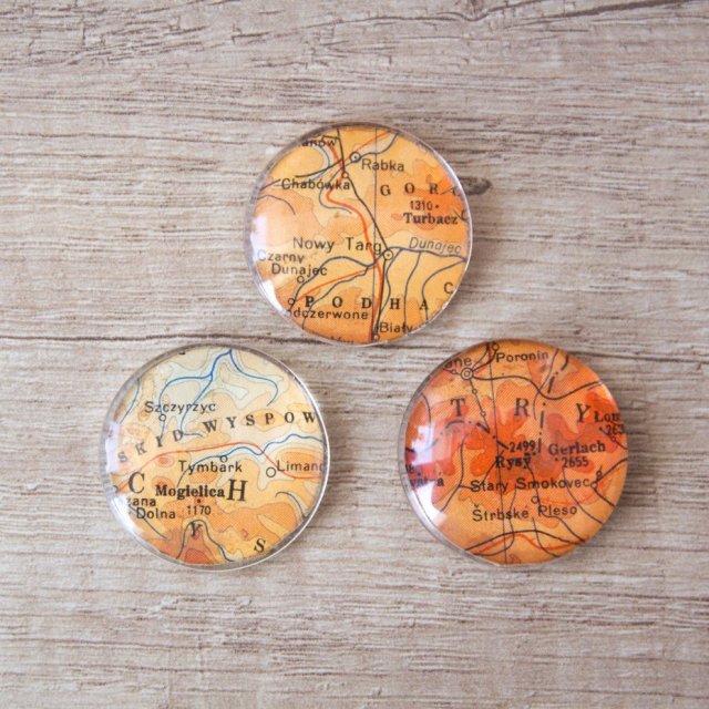 Magnesy wykonane z prawdziwych vintage map świata.