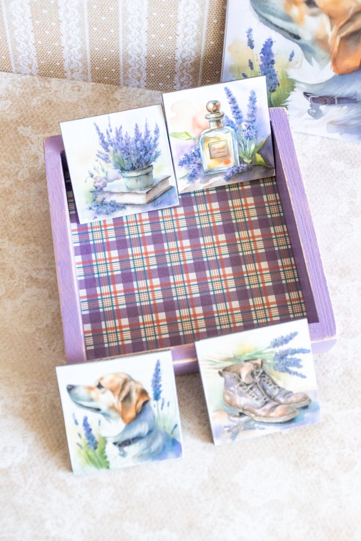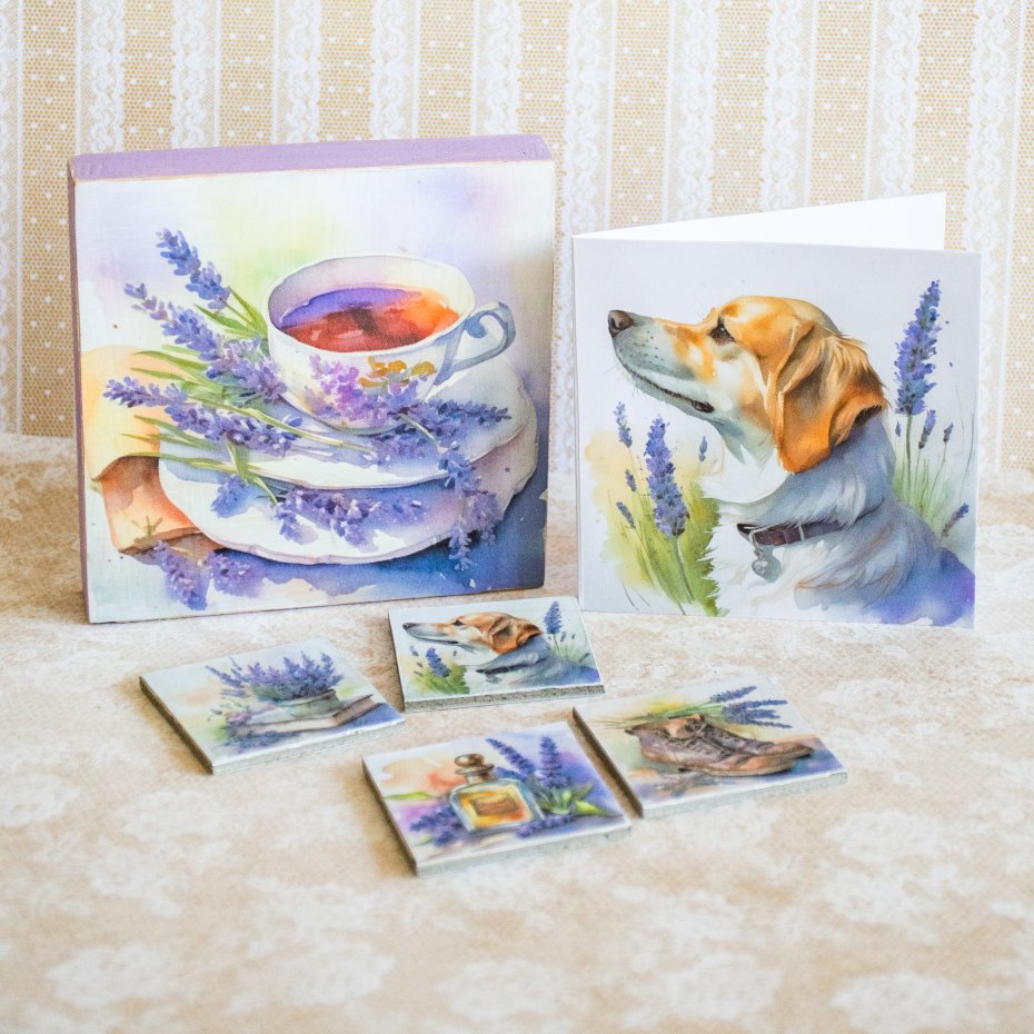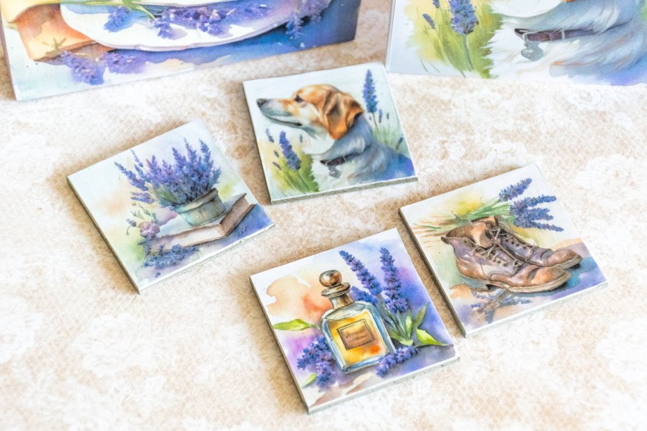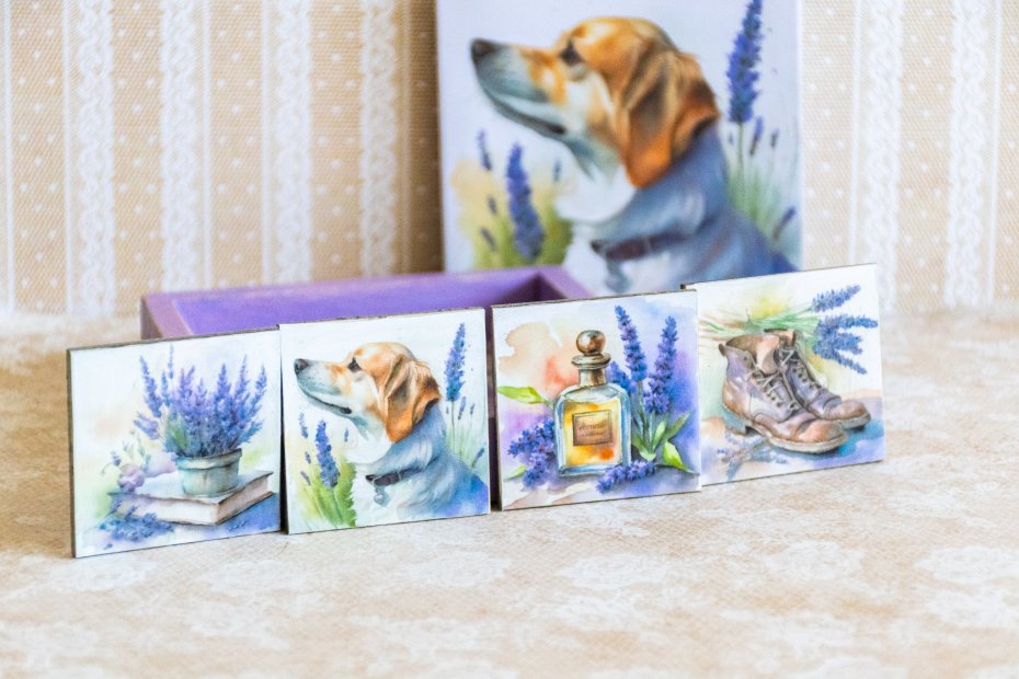 Tagi: #kartka okolicznościowa, #lawenda, #magnes na lodówkę, #pies