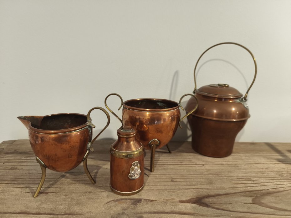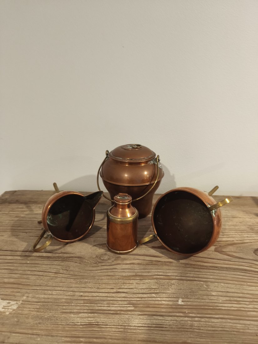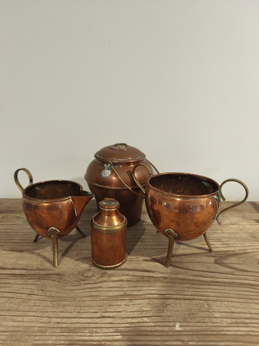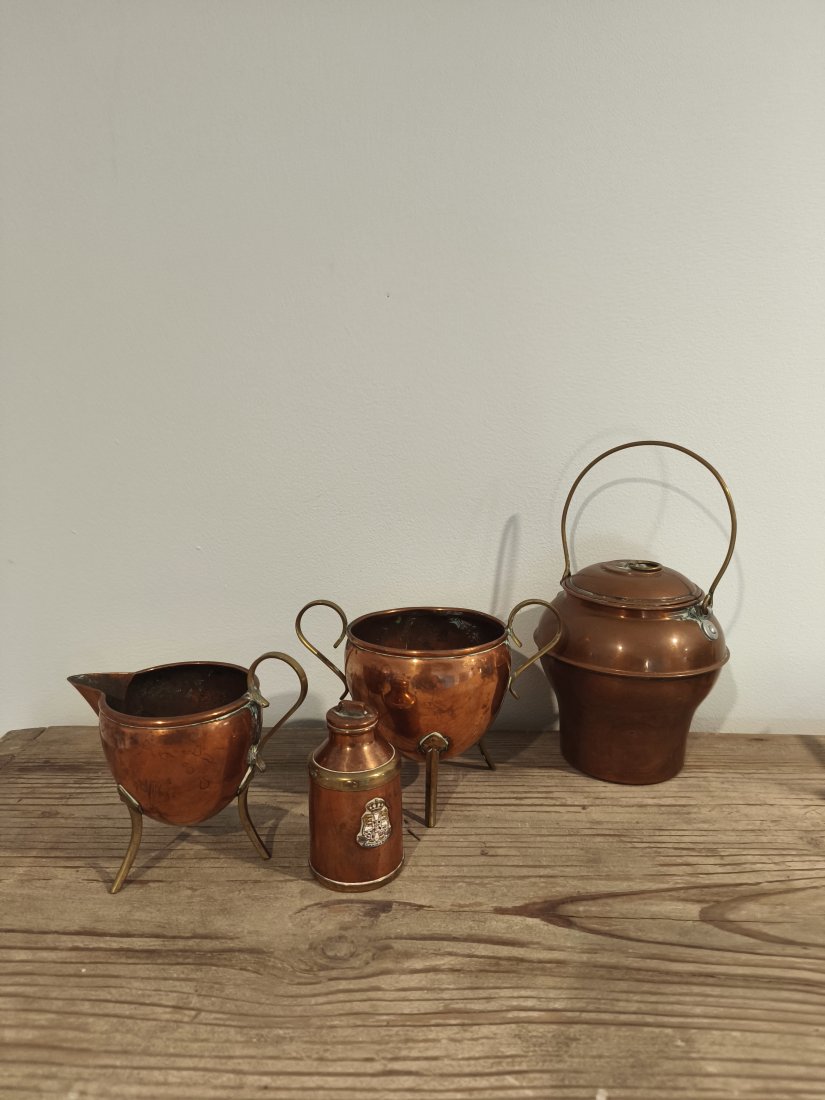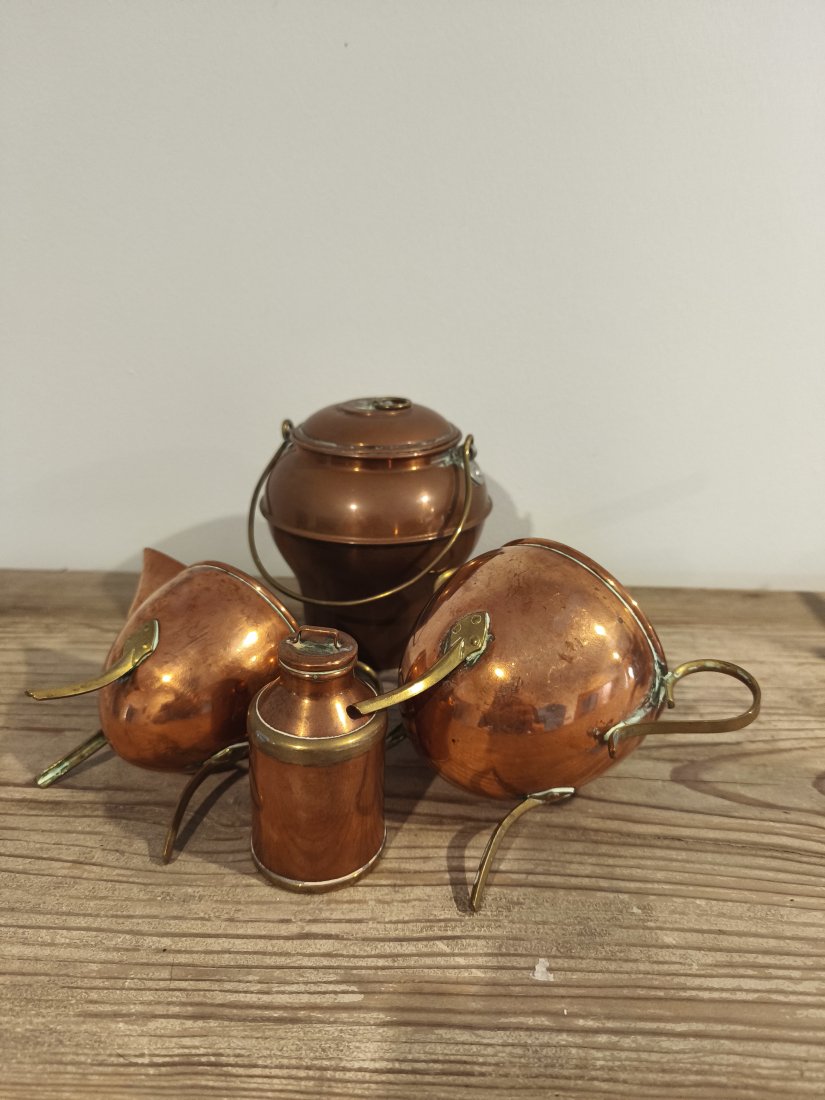 Zestaw naczyń miedzianych. Super do wystroju w stylu Vintage.