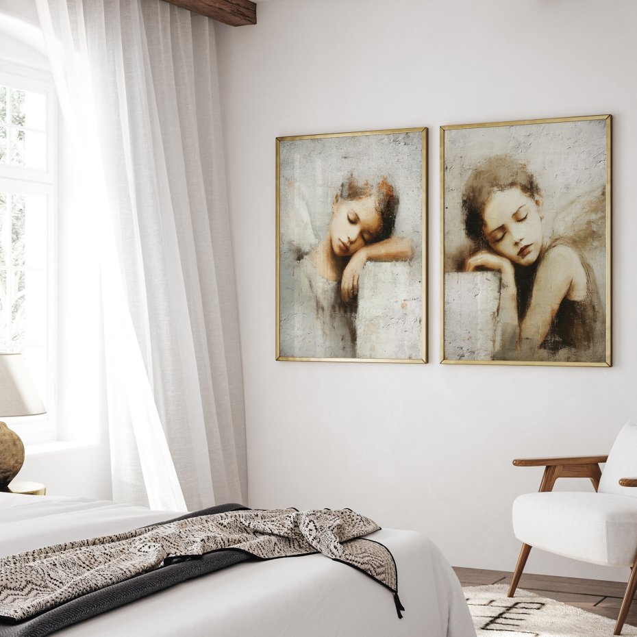 Piękny zestaw plakatów 2 części, 50x70 cm każda. Te obrazy doskonale się uzupełniają, tworząc spójną galerię ścienną.