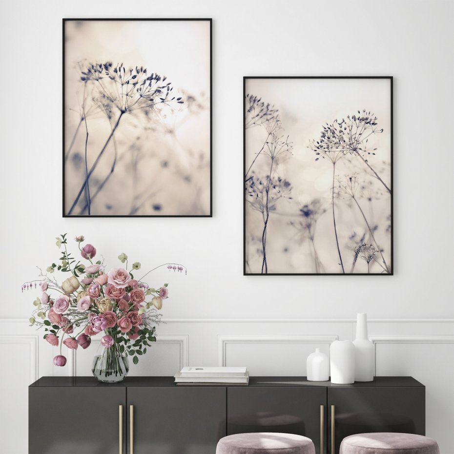 Piękny zestaw plakatów 2 części, każda 50x70 cm. Te obrazy doskonale się uzupełniają, tworząc spójną, naturalną galerię ścienną.