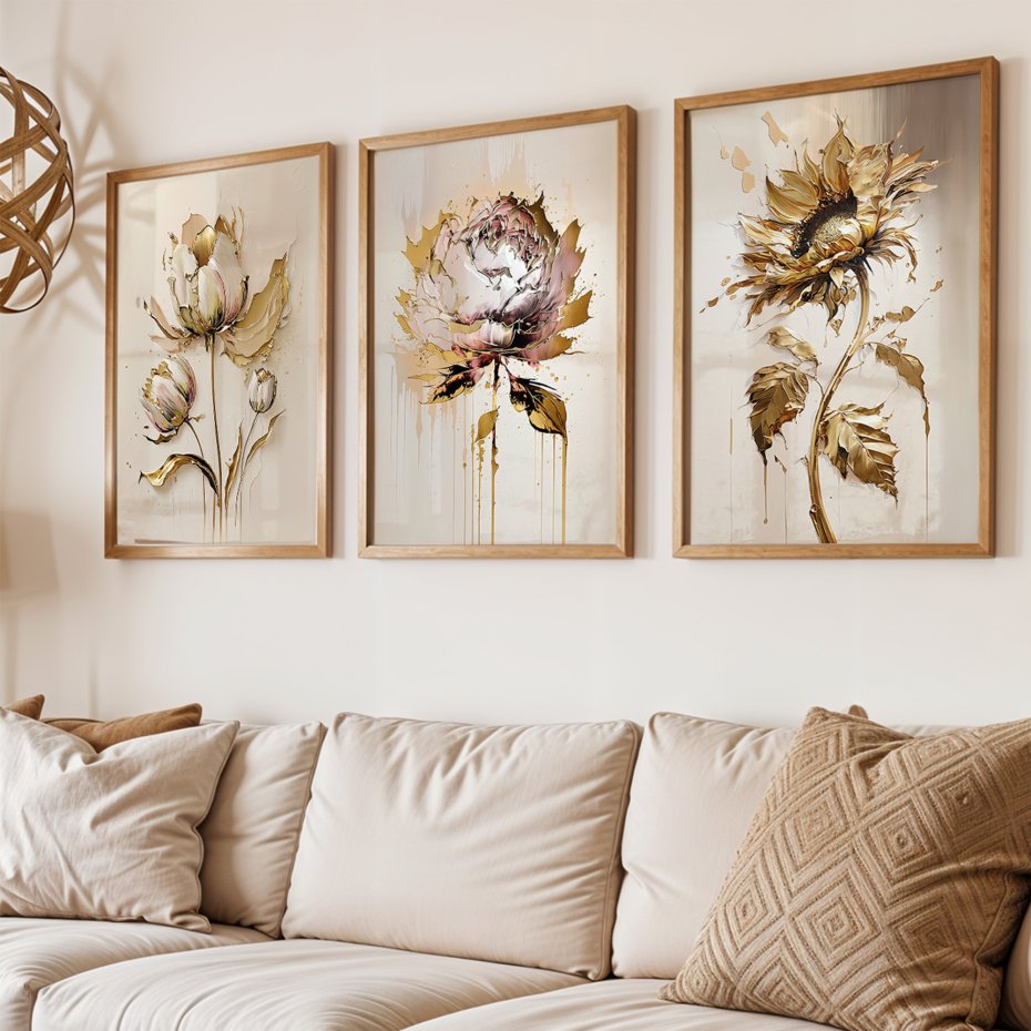 Piękny zestaw plakatów artystycznych 3części, każda 30x40 cm