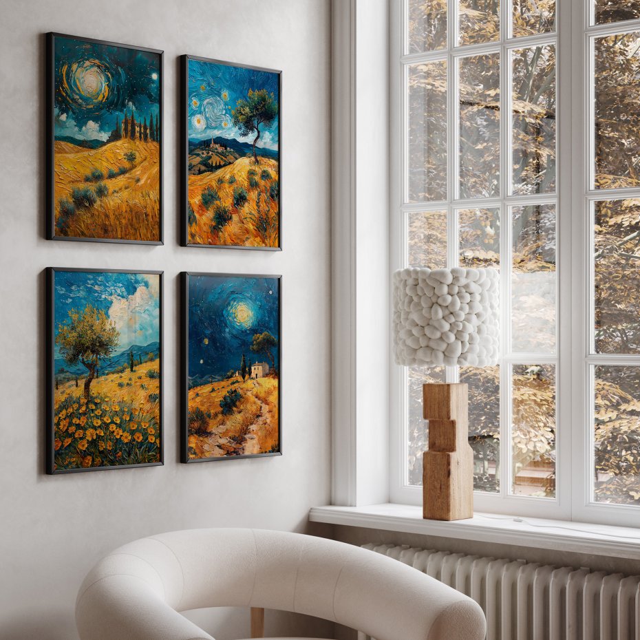 Piękny zestaw plakatów artystycznych 4 części, każda 40x50 cm