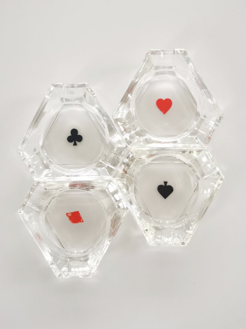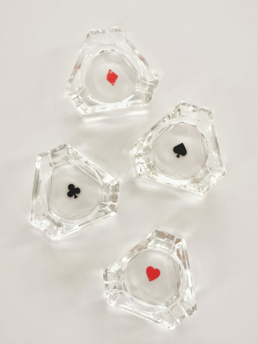Popielniczki szklane karciane do gry w brydża lub pokera.
