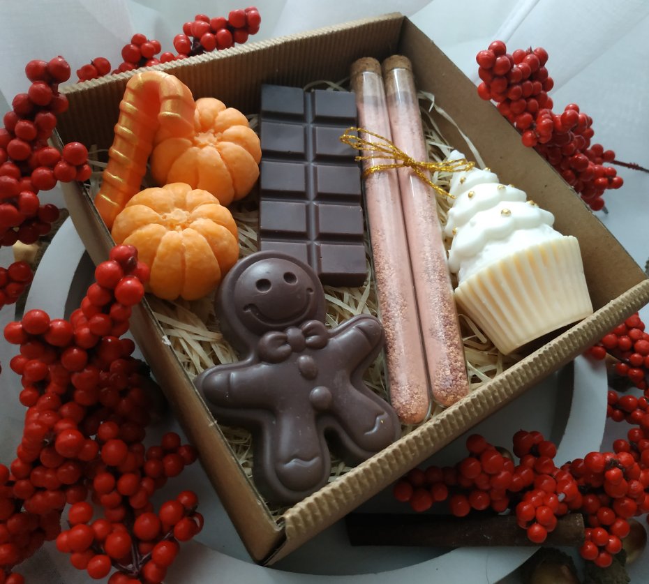 Mydełka glicerynowe dekoracyjne o zapachu pomarańczy i czekolady: