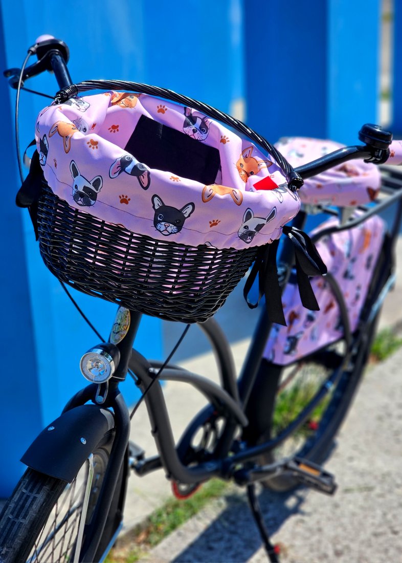 -pokrowce siodełka i rączek wykonane z materiału wodoodpornego tak jak i wkład do koszyka