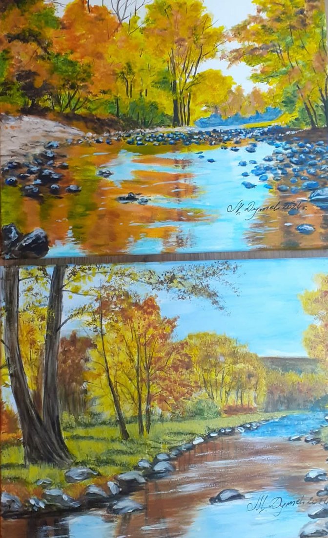 Jeden niepowtarzalny zestaw: "JESIEŃ NAD POTOKIEM" - pełen energii poprzez ekspresywne połączenie kolorów, który tworzy jednocześnie spójną i niezwykle nastrojową całość. To ciekawy duet, który wprowadzi do domu powiew nostalgii. Obrazy przepięknie wypełnią i udekorują ściany salonu, sypialni, czy biura. Idealne również jako prezent na każdą okazję.