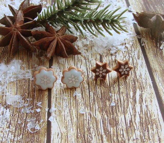 Zestaw uroczych kolczyków w klimacie świątecznym wykonanymi z masy termoutwardzalnej fimo.
