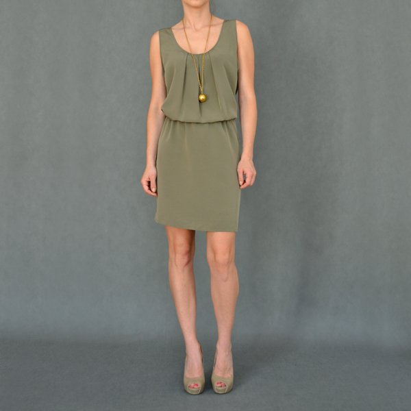 Sukienka w kolorze zgaszonej zieleni marki VILA. W talii gumka, można zbluzować jak na zdjęciach. Polecam serdecznie.