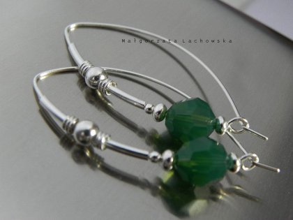 Delikatne kolczyki wykonane ze srebra próby 925 oraz kryształów Swarovskiego wielkości 8 mm. Długość kolczyków - 4 cm.