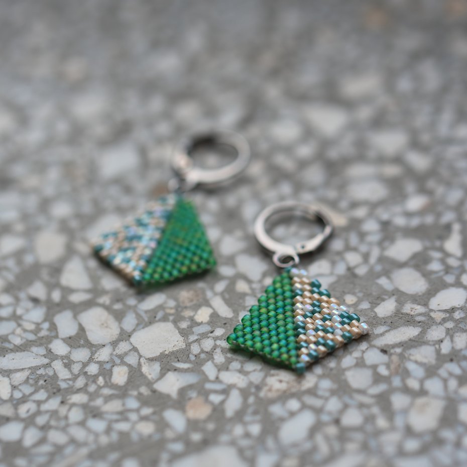 Kolczyki wykonane są trudną i czasochłonną metodą beadingu. Są bardzo lekkie.